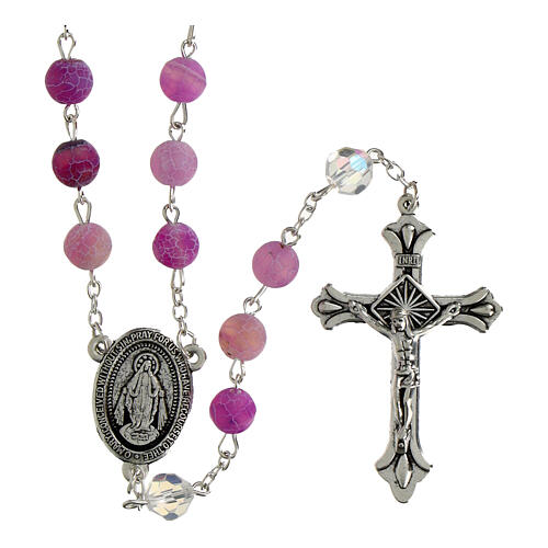 Rosario Madonna Miracolosa vetro screziato ametista pater cristallo 8mm