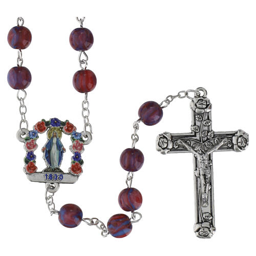 Rosario Madonna Miracolosa 8 mm grani marmorizzati rosso vetro.