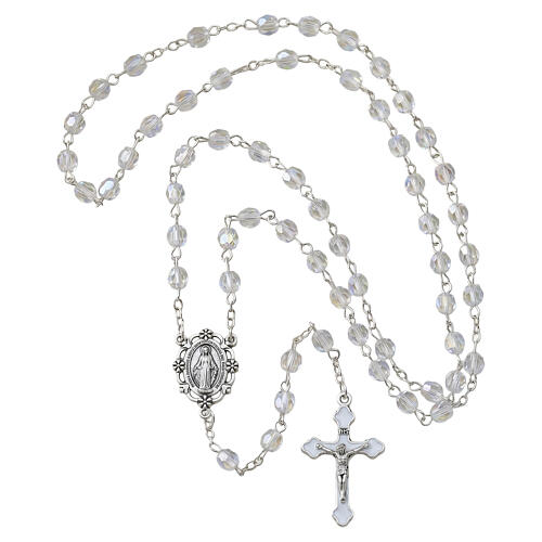 Rosario Madonna Miracolosa grani 4 mm in vetro effetto cristallo