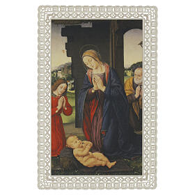 In questa categoria trovi i santini da collezione di alta fascia, immaginette sacre da collezione. Realizzati con materiali pregiati come la carta in fibra di cotone, questi santini religiosi sono arricchiti da decori merlettati che richiamano la tradizione degli antichi santini. Ogni pezzo della collezione santini è prodotto interamente in Italia, combinando tecnologie avanzate con la maestria artigianale delle botteghe locali. Oltre a servire come oggetti di devozione personale per collezionisti di santini, questi santini sono ideali come regali significativi per occasioni speciali. La loro qualità li rende adatti anche per essere esposti come elementi decorativi in ambienti domestici o di culto.