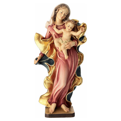 Statua in legno d'acero dipinto, realizzata manualmente da artigiani della Valgardena, secondo la migliore tradizione artistica locale. Gli artigiani e gli artisti scolpiscono il legno dei boschi alpini e lo dipingono con maestria in ogni minimo particolare. Articolo di grande pregio e qualità.
