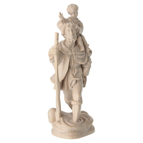 San Cristoforo con bimbo 22 cm in legno della Valgardena, finitura naturale cerata.