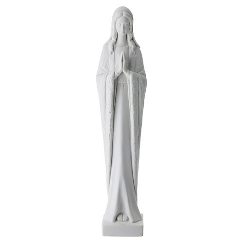 Statua della Madonna in preghiera realizzata in polvere di marmo con altezza di 65 centimetri.