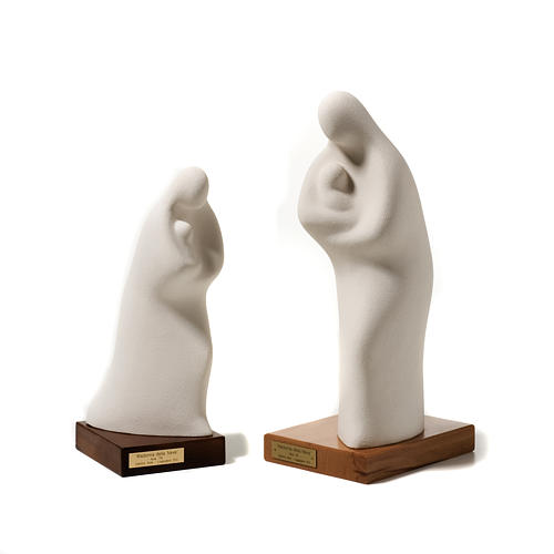 Statua stilizzata realizzata a mano, in Italia, in argilla refrattaria bianca.