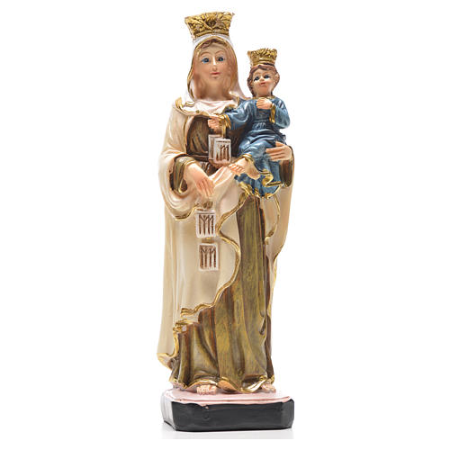 Statua della Madonna del Carmine 12 cm con immaginetta e preghiera in inglese.