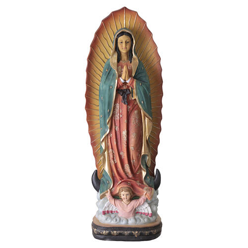 Raffigurazione in vetroresina della Madonna di Guadalupe, realizzata in vetroresina dipinta a mano tramite colata.