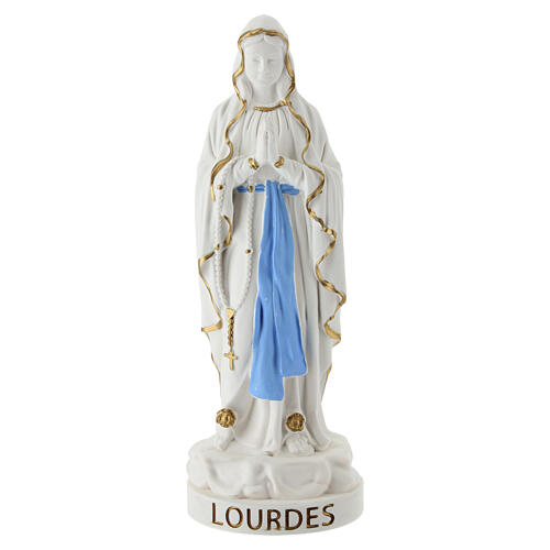 Statua Madonna di Lourdes in resina con rosario dorato 20 cm