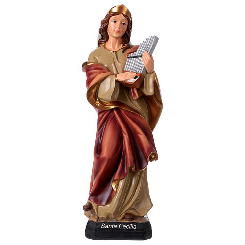 Statua in resina raffigurante Santa Cecilia di h 40 cm.