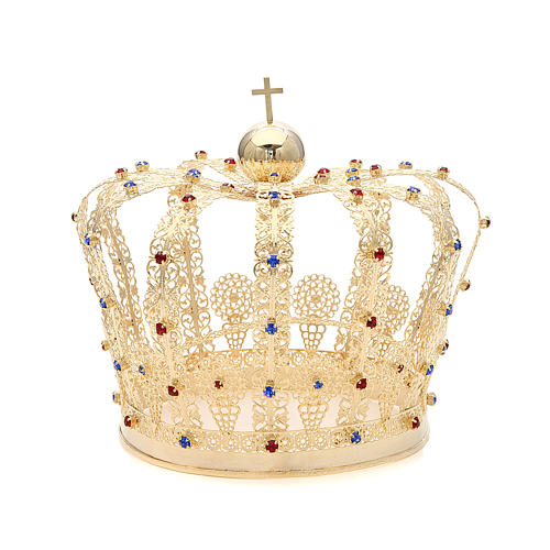 Corona per statue lavorata: fili di ottone color oro capaci di creare particolari ombreggiature chiaroscure che donano maggiore luce e risalto al manufatto.