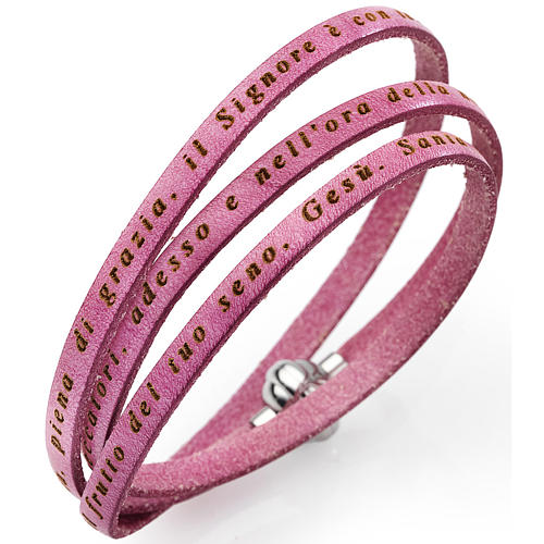 Bracciale AMEN con incisione Ave Maria in italiano, pelle color rosa antico e chiusura magnetica.