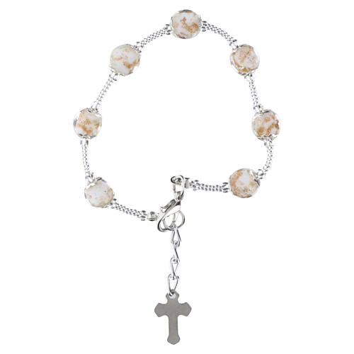Bracciale donna bianco perle Murano 8mm argento e croce