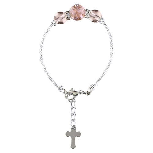 Bracciale LUCY rosa perle 10mm vetro di Murano con finitura in metallo argento.