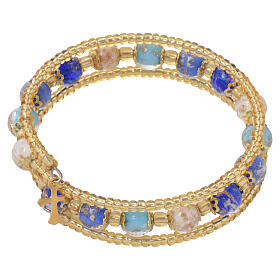 Bracciale grani 4 mm vetro azzurro grani multicolore su spirale