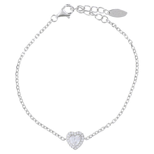 Bracciale Amen finitura rodio cuore zirconi bianchi argento 925.