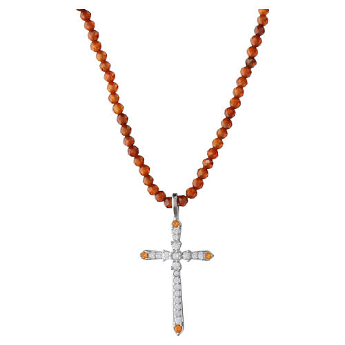 Collana arancio croce argento 925 zirconi bianchi Benedictus