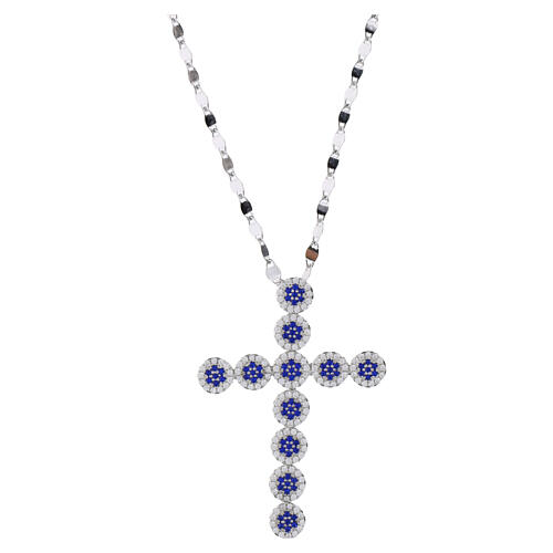 Collana argento pendente croce zirconi bianchi blu Benedictus
