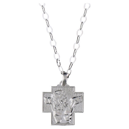 Collana croce Gesù Crocifisso argento 925 rodiato Benedictus.