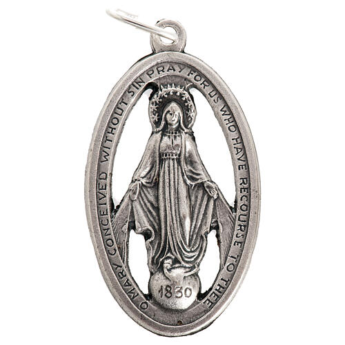 Medaglia Miracolosa traforata in metallo ossidato di diametro 32 mm.