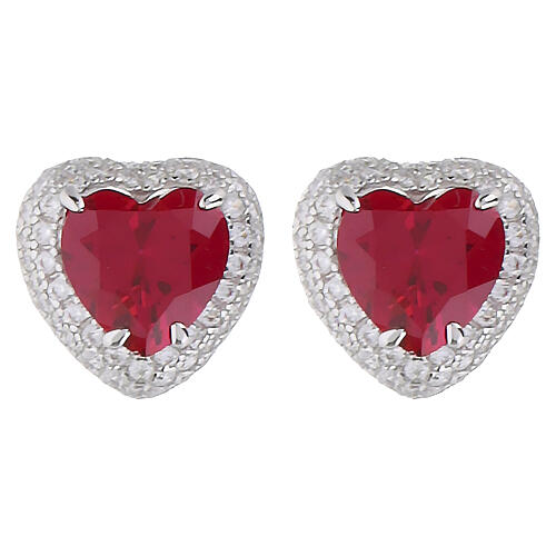 Orecchini cuore zircone rosso ciliegia argento rodiato AMEN.