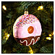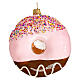 Pallina per albero di Natale a forma di donut alla fragola e cioccolato, realizzata in vetro soffiato.
