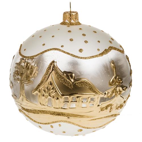 Addobbo albero Natale vetro bianco oro paese neve 12 cm