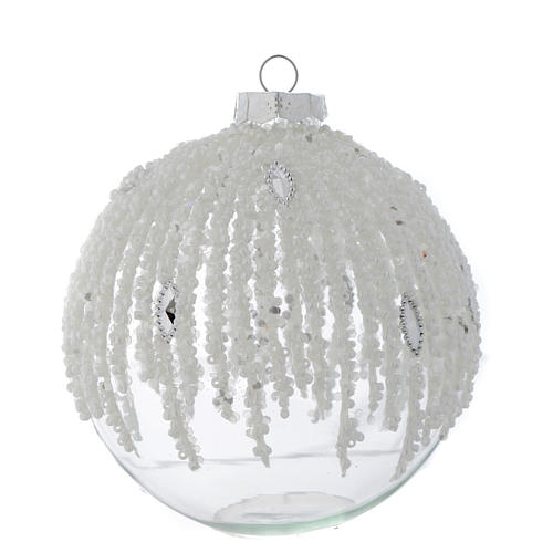 Palla Albero Natale 100 mm vetro trasparente decorato perline
