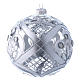 Palla in vetro soffiato trasparente, con decoro argento, 120 mm.