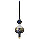 Puntale albero Natale vetro soffiato blu satinato decoro oro strass 35 cm