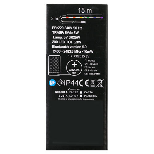 Catena luminosa smart 200 led con telecomando e app 15 metri uso int-est.