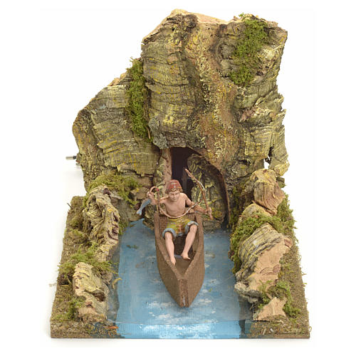 Ambiente con barca in movimento, realizzato interamente in Italia, da artigiani esperti. Il movimento della barca parte semplicemente collegando la presa a corrente 220V.