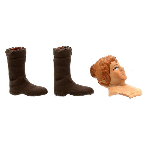La confezione è composta da: una testa, una coppia di mani e una coppia di stivali realizzati in terracotta.