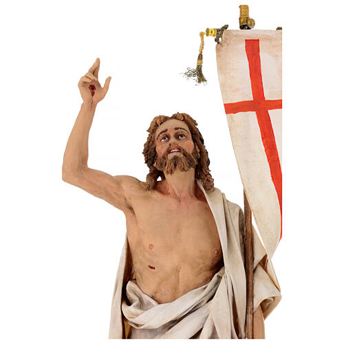 Statua di Gesù risorto, di altezza prespe 30 cm, realizzata in terracotta e stoffa in Italia da Angela Tripi.