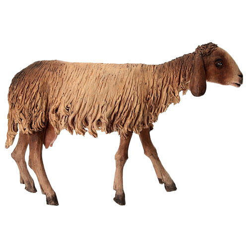 Pecora 30 cm bianca nera Angela Tripi, statua in terracotta per presepe.