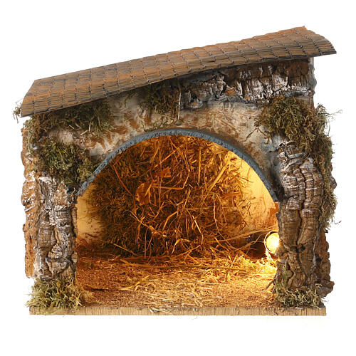 Capanna con luce 30x30x20 cm cartone Moranduzzo presepe 10 cm.
