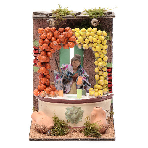 Statuetta ambientata in terracotta e rivestita in stoffa in movimento, fatta artigianalmente da presepisti napoletani.