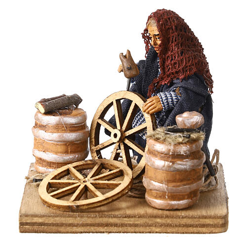 Der Drechsler oder Radmacher ist eine sehr schöne Krippenfigur. Er hat von mir eine eigene kleine Werkstatt in einer meiner Krippenstädte erhalten, die er nun ausfüllt. T.W.