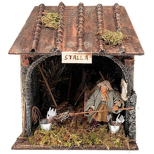 Scena del presepe napoletano realizzato in terracotta in movimento.