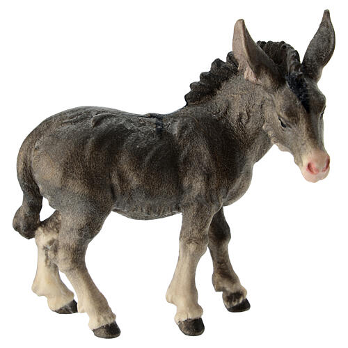 Asino legno dipinto per presepe Kostner 12 cm.