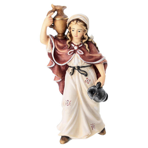 Donna con brocca legno dipinto 12 cm presepe Mahlknecht Val Gardena