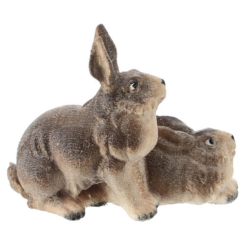 Gruppo conigli legno dipinto Val Gardena per presepe Rainell 11 cm.