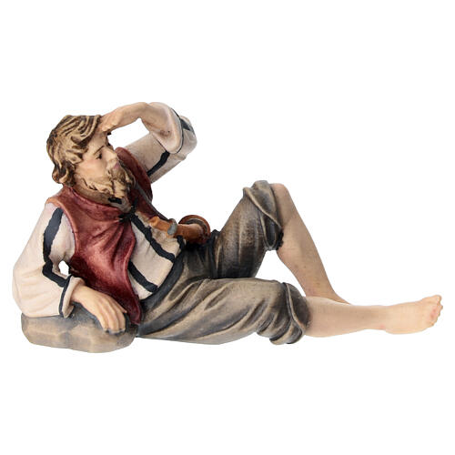 Pastore sdraiato legno dipinto Kostner presepe 9,5 cm