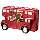 Statuetta di autobus londinese a due piano, al cui centro si trova una teca illuminata di vetro con neve glitter che si muove da sola. Dentro la teca si vede Babbo Natale che addobba un albero. Le ruote girano e i fari frontali si illuminano.