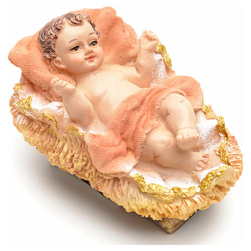 Gesù Bambino in culla in resina, di dimensioni 4x2,5x2,5 cm