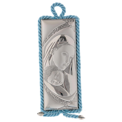 Capoculla con immagine della Maternità e carillon, celeste