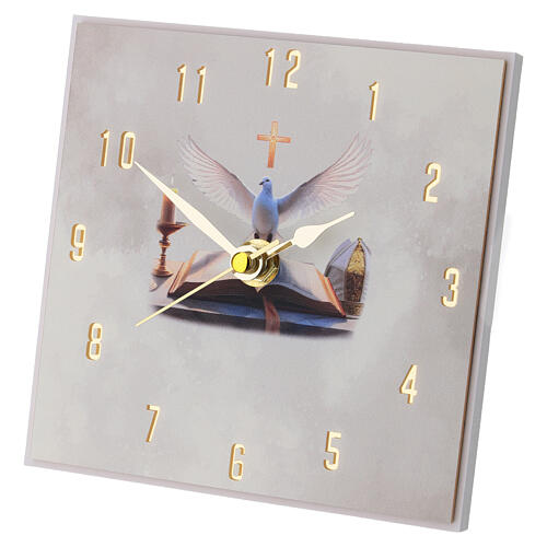 Orologio bomboniera per Cresima da tavolo con decorazione simbolica legata al sacramento della Cresima.