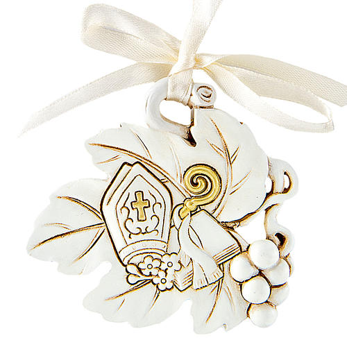 Appendino a forma di foglia di vite con immagine in rilievo.