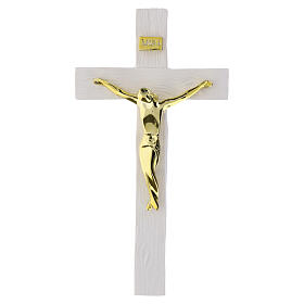 Crocifisso effetto legno bianco  corpo dorato  21x10 cm resina