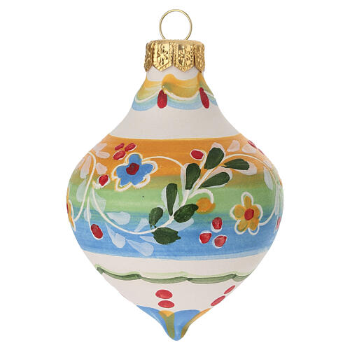 Pallina pasquale a punta in terracotta smaltata con decorazione floreale policroma dipinta a mano e realizzata in Italia.