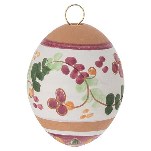 Pallina decorativa a forma di uovo in terracotta smaltata con motivo floreale dipinta a mano e realizzata in Italia.