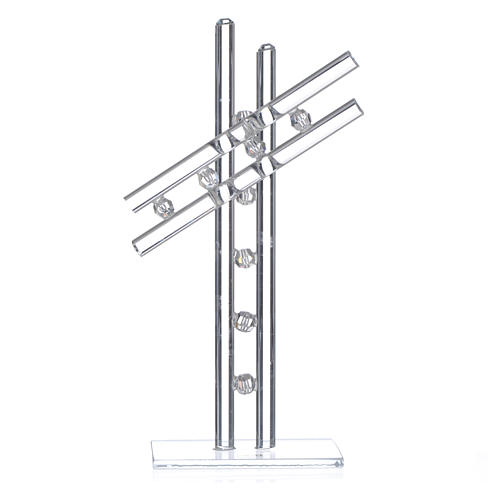 Croce realizzata in vetro con sfere decorative in cristallo.
